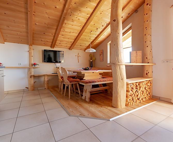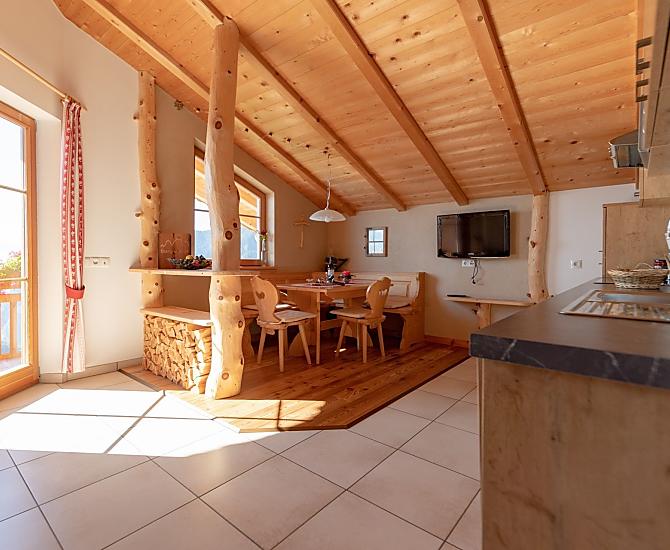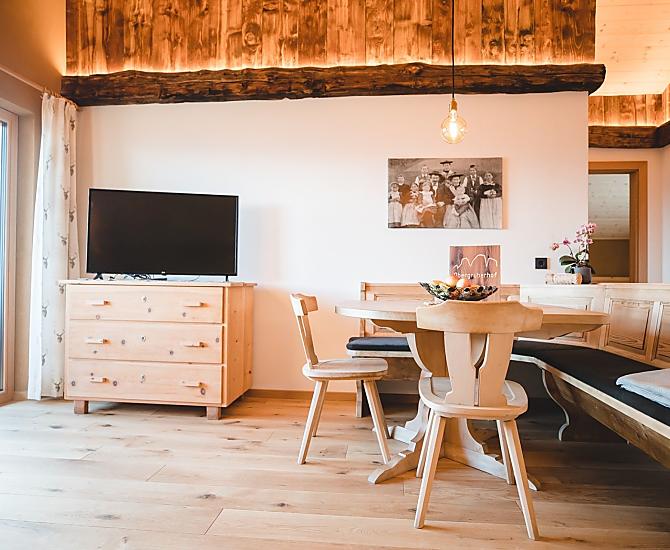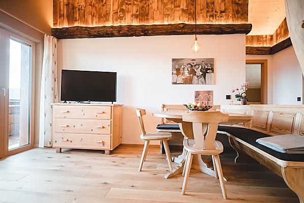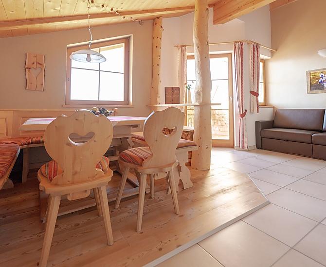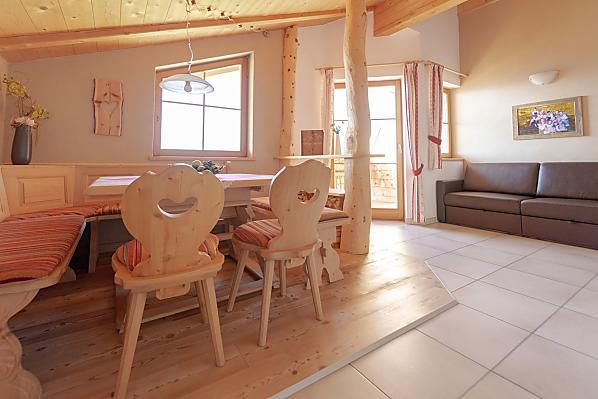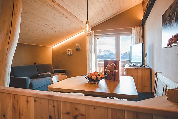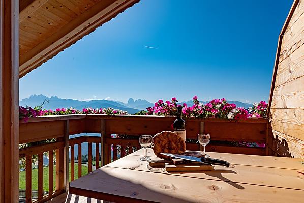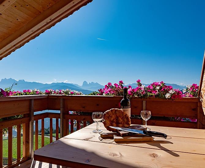 Un idilliaco maso di montagna in una posizione panoramica indimenticabile. I nostri nuovi appartamenti vacanze, arredati con cura, invitano coppie e famiglie a rilassarsi dallo stress della vita quotidiana. L'ampio uso di legno nell'arredamento regala un'accogliente sensazione di casa che permette di ricaricare le batterie. Il nostro maso si trova in mezzo a prati e boschi. Lontano dal trambusto, comunque in posizione molto centrale, siamo il punto di partenza ideale per varie attività. Una vacanza attiva, alla scoperta della cultura e delle tradizioni altoatesine o una pausa di relax: da noi tutto questo è possibile. La fermata dell'autobus proprio di fronte alla casa permette di esplorare la zona circostante in tutta comodità. Il laghetto di Fiè (stagno naturale) offre il refrigerio perfetto nelle calde giornate estive o il pattinaggio sul ghiaccio in inverno ed è raggiungibile con una bella passeggiata di 20 minuti.