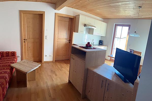 Godetevi giorni indimenticabili nel nostro appartamento vacanze appena ristrutturato, inondato di luce e capace di coniugare il comfort moderno con l’idillio rurale. Gli ampi spazi aperti della zona giorno invitano al relax e offrono una vista incantevole sui vigneti di Santa Maddalena.