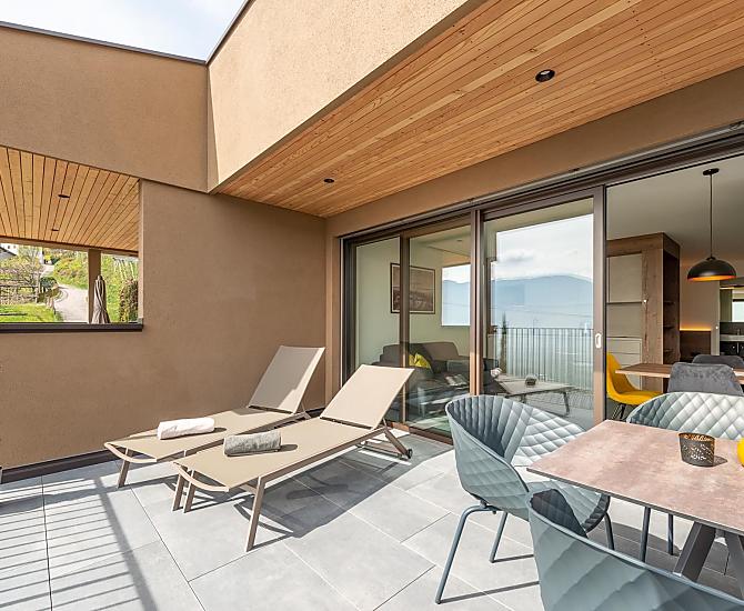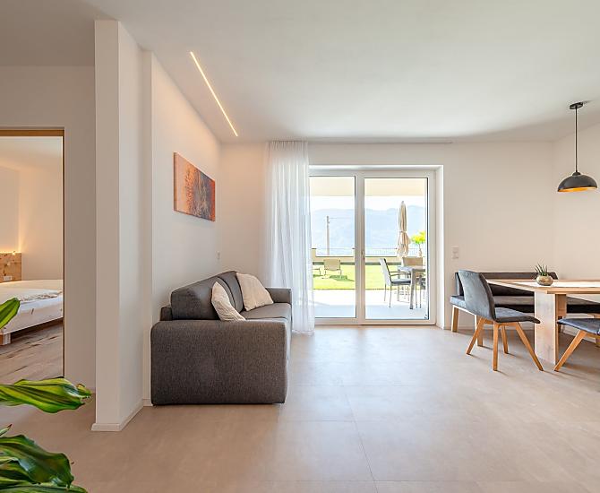 Il nostro maso, aperto nel 2020, si trova nella soleggiata Sella, in mezzo ai nostri meleti e a una natura perfetta. Dalla nostra terrazza soleggiata si gode di un'ampia vista sull'intera valle, sul villaggio vinicolo di Termeno e sulle cantine circostanti. Vi renderemo partecipi della nostra vita di contadini e vi offriremo una visione unica della coltivazione delle mele in Alto Adige. Il nostro legame con la natura ci ha ispirato a utilizzare prodotti naturali anche nei nostri appartamenti per le vacanze. I moderni e spaziosi appartamenti certificati CasaClima A dispongono anche di riscaldamento a pavimento, aria condizionata, Wi-Fi, sistema di aspirazione e molto altro ancora. Che si tratti di una piacevole escursione nei boschi vicini, di un emozionante giro in bicicletta tra i frutteti in fiore o di "lasciar ciondolare l'anima" sull'ampio prato, da noi vi sentirete semplicemente a casa. Approfittate di tutti i vantaggi della mobil & activ Card e dell'ingresso gratuito alla piscina di Termeno.