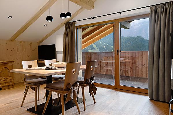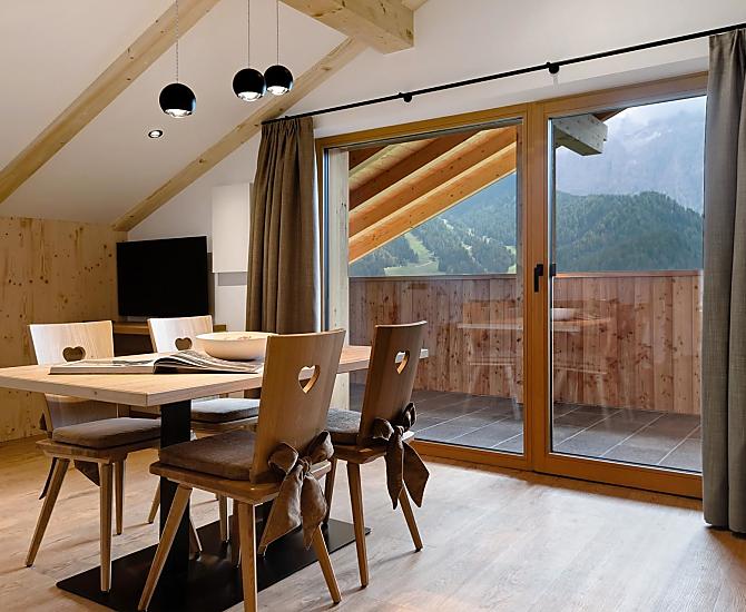 La vista più bella di Selva? Probabilmente sì! Immergetevi nella vita dei contadini di montagna, direttamente dalla vostra casa vacanze. Skitour ed escursioni partono proprio da qui, e le piste della Sellaronda sono a portata di mano. Per coppie, famiglie, amici cari: per voi. Benvenuti nei nostri nuovi appartamenti!