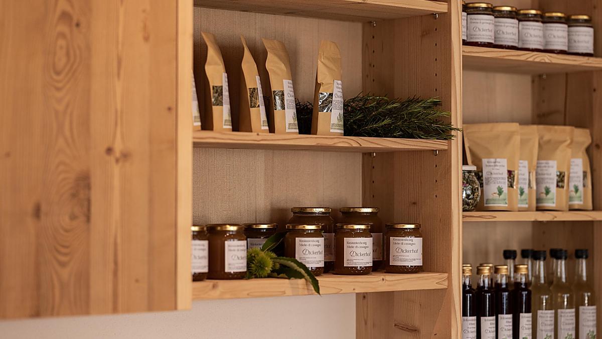 - Prodotti del maso per la colazione: uova, miele, confetture di frutta, sciroppo, frutta essiccata, infuso di erbe, pasticcini, verdure fresche di stagione, frutta fresca di stagione