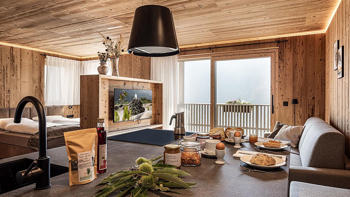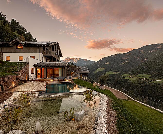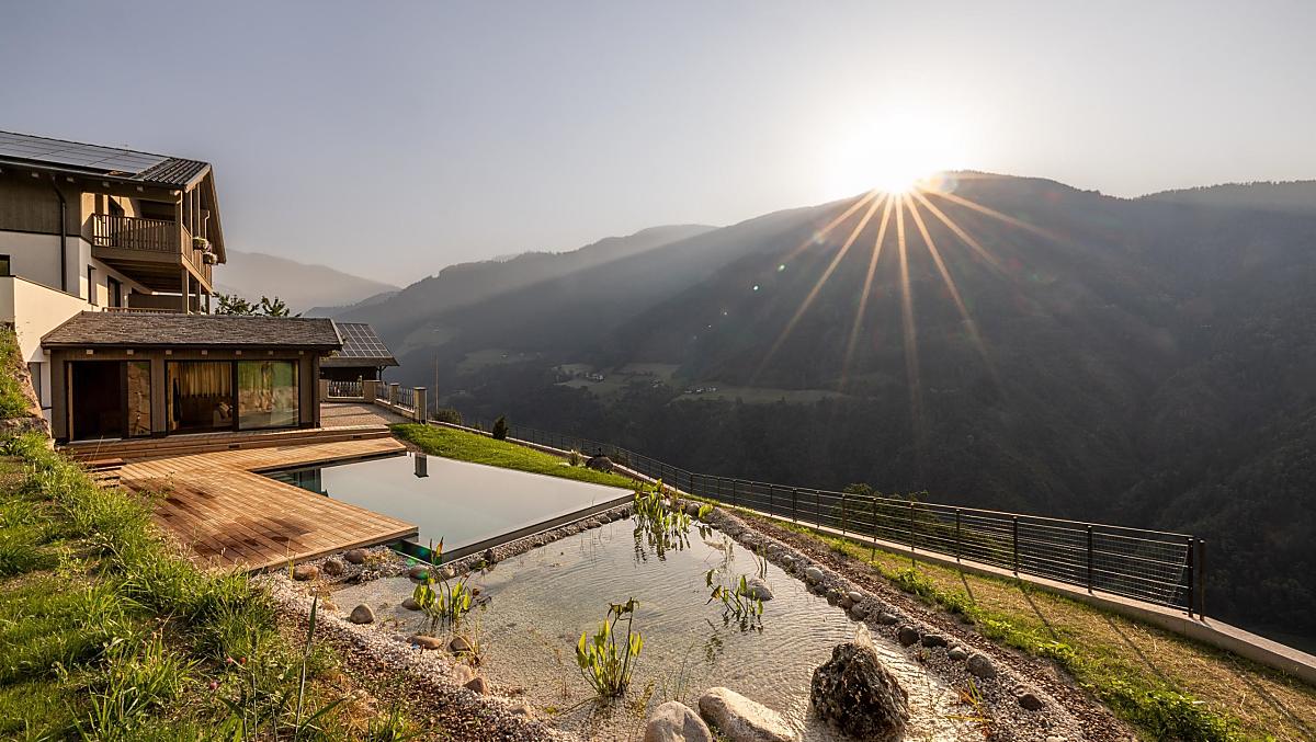 Il maso Dickerhof si trova in posizione panoramica unica, immerso nella quiete dei monti e affacciato su una valle spettacolare. Qui, dove il sole bacia i pendii e la natura resta intatta, si può nuotare nella piscina biologica riscaldata, partire per escursioni e tour in bici oppure semplicemente rilassarsi in tutta tranquillità.
