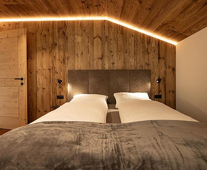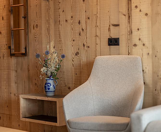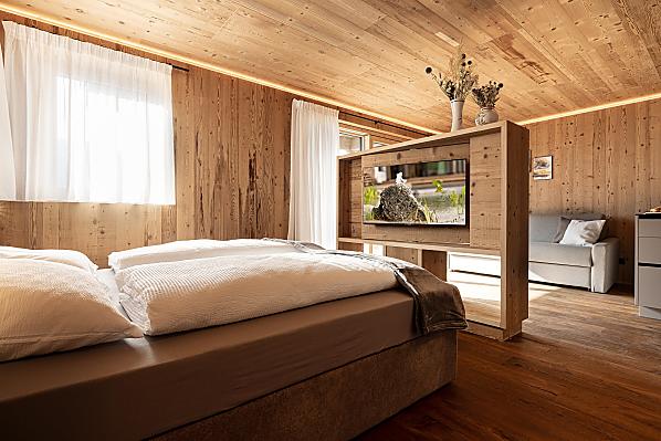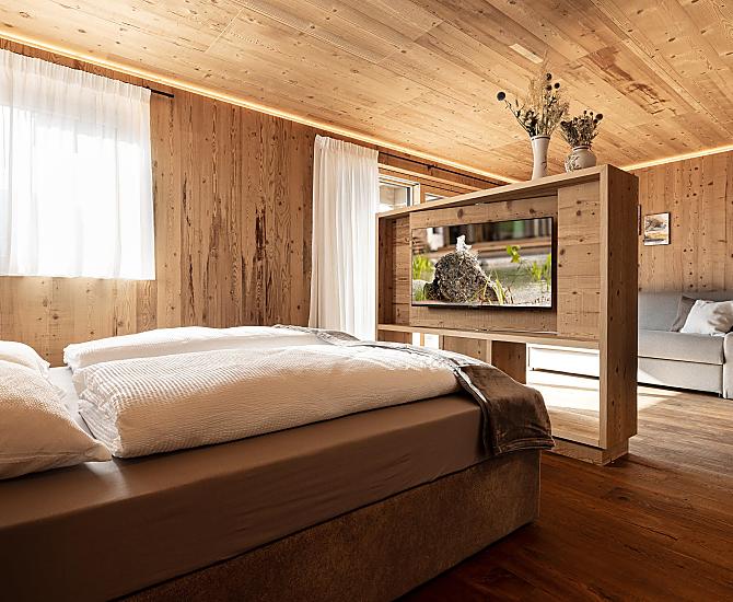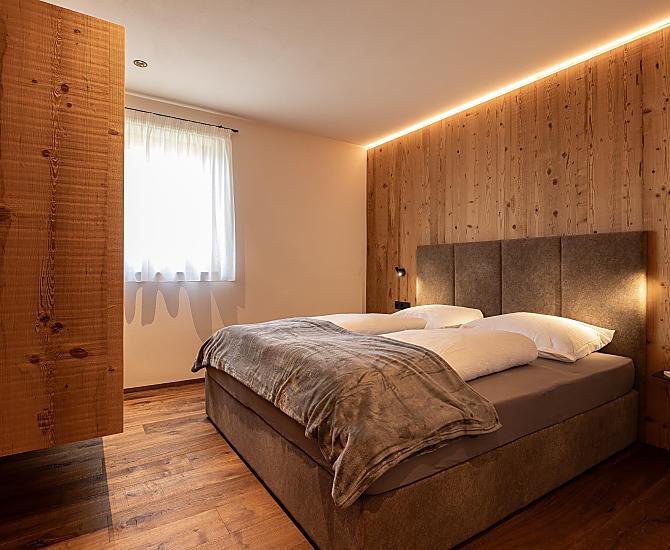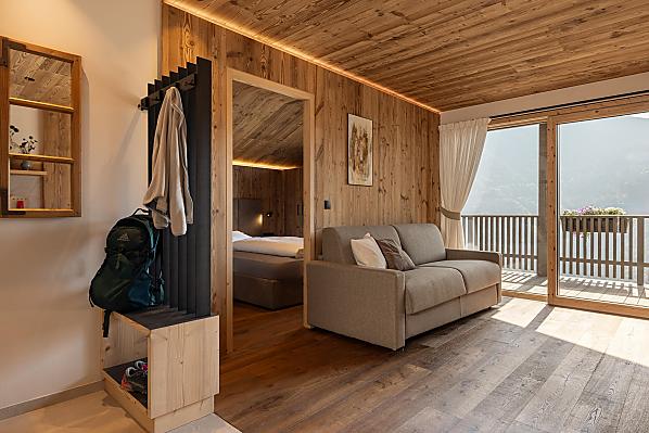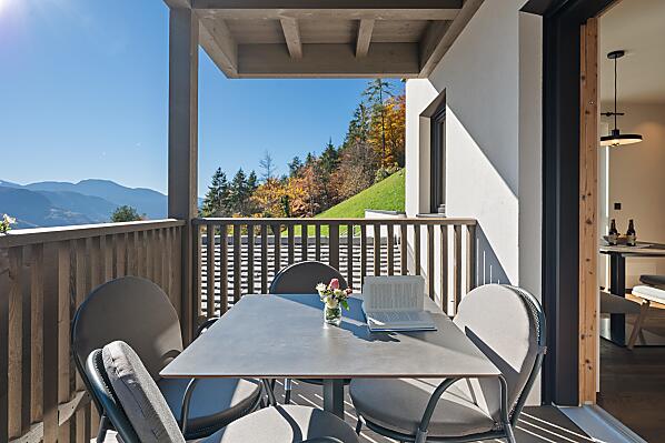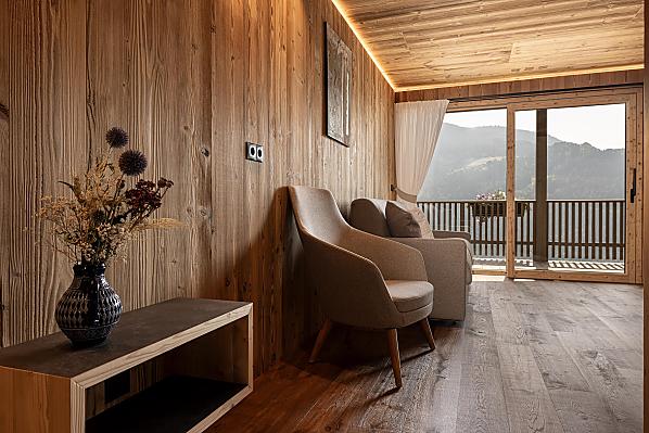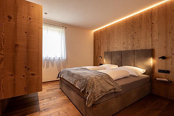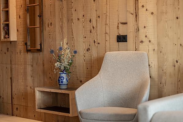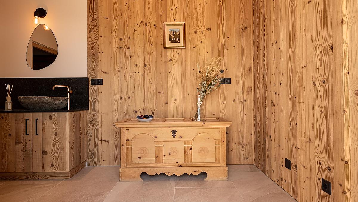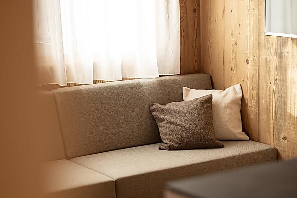Gli appartamenti, arredati con cura e dotati di terrazza privata, coniugano il comfort moderno con l’atmosfera autentica di un maso di montagna. L’area esterna curata nei dettagli e la zona benessere con sauna e sala relax invitano a prendersi una pausa rigenerante per il corpo e lo spirito.