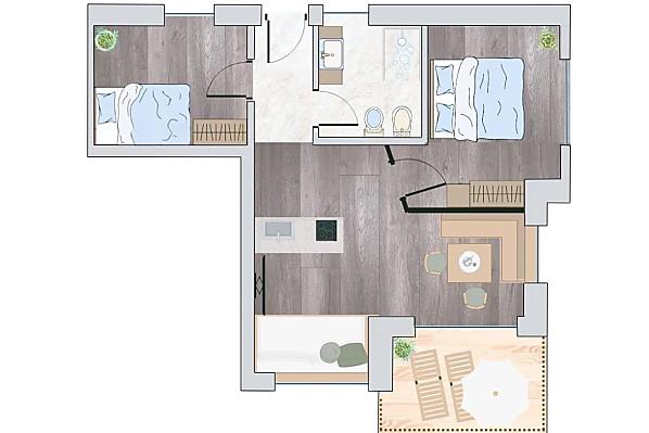 2-6 persone (4 letti fissi) 55m²