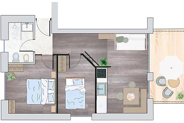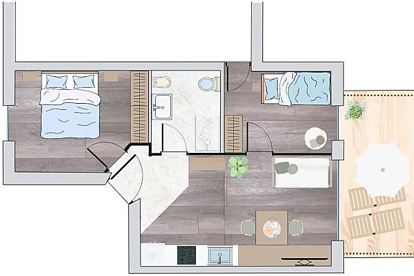 2-4 persone (2 letti fissi) 43m²