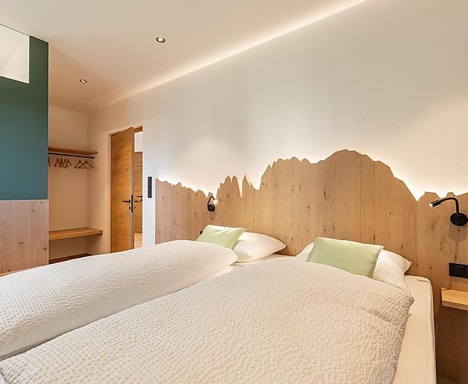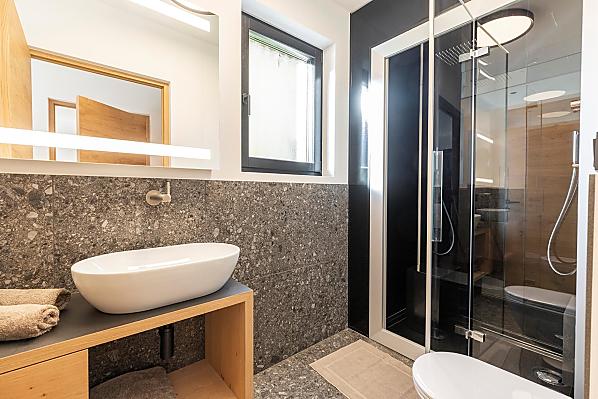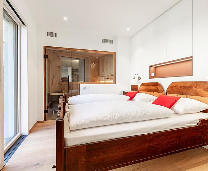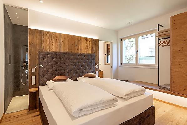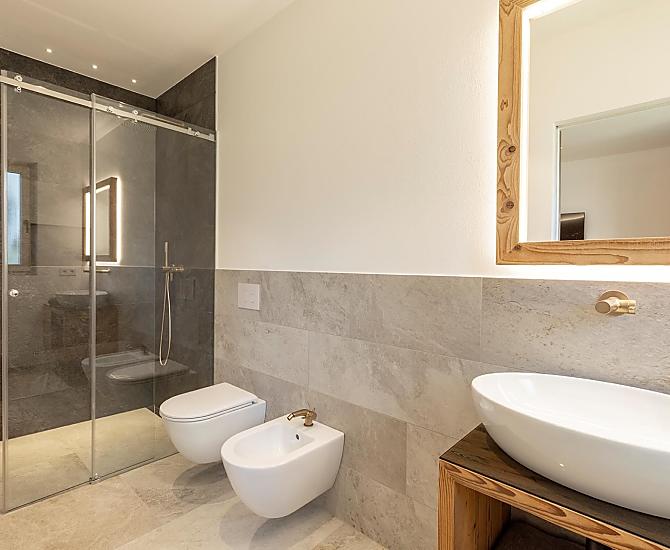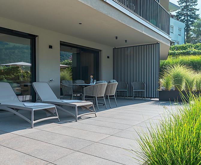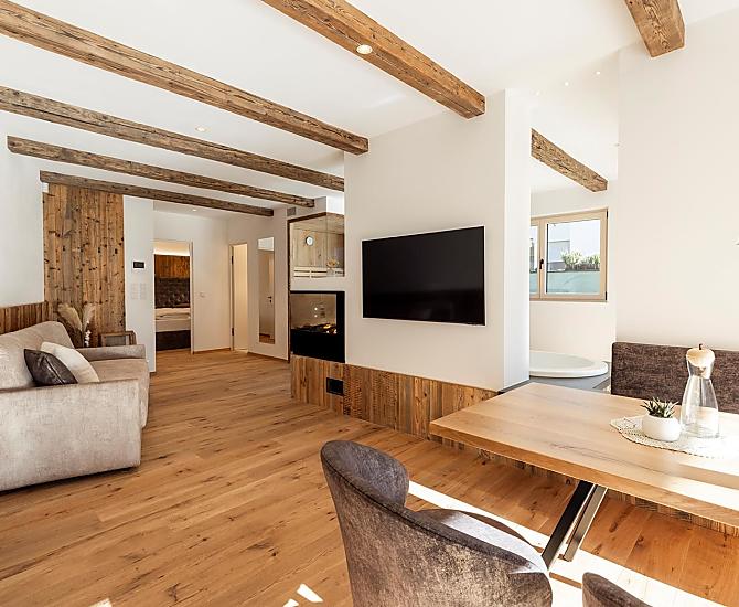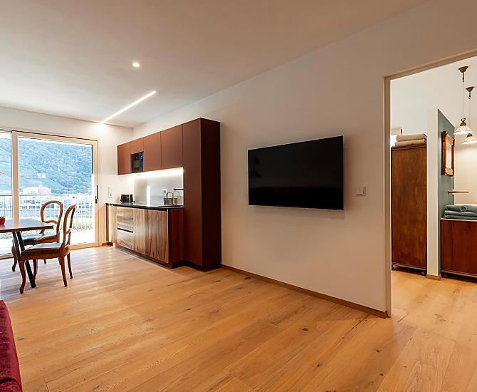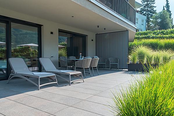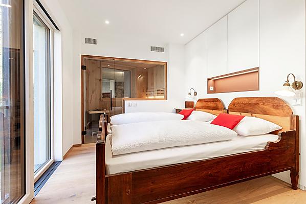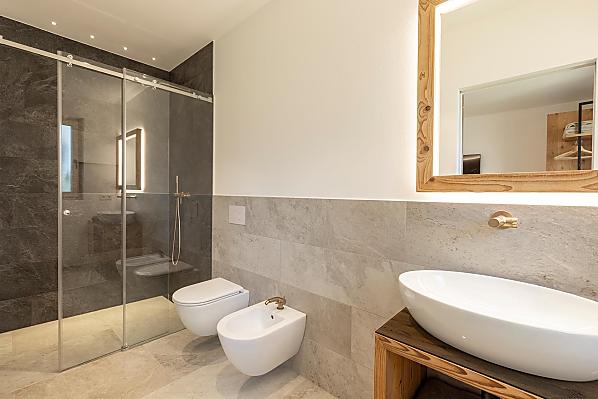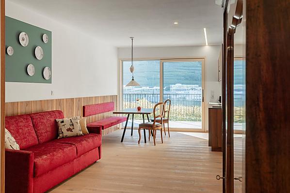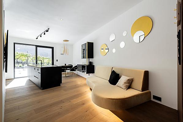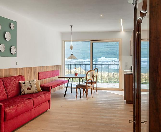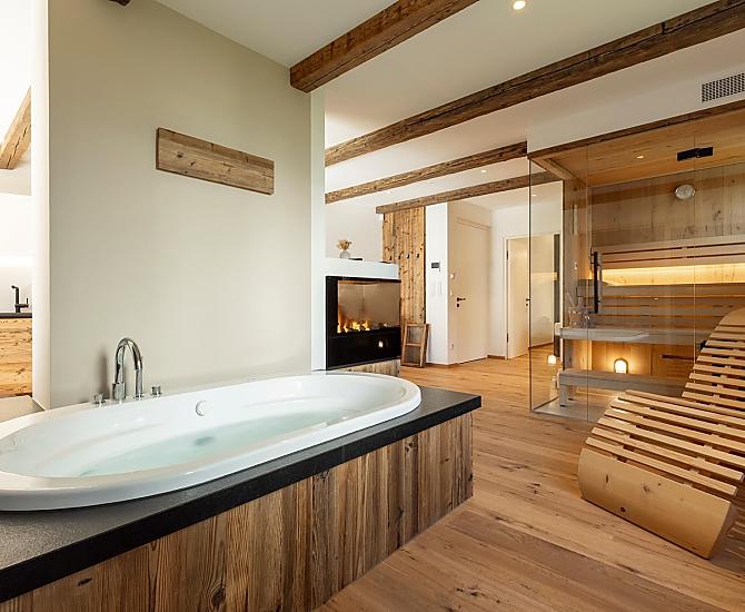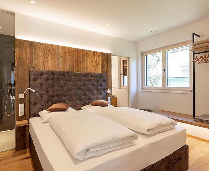 Vi aspettano appartamenti nuovi e moderni con sauna e idromassaggio privati e una splendida vista sul Catinaccio.