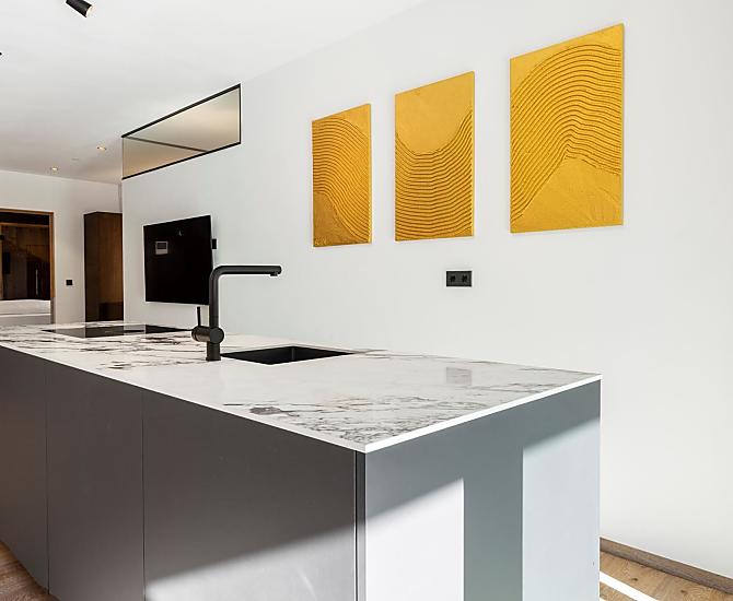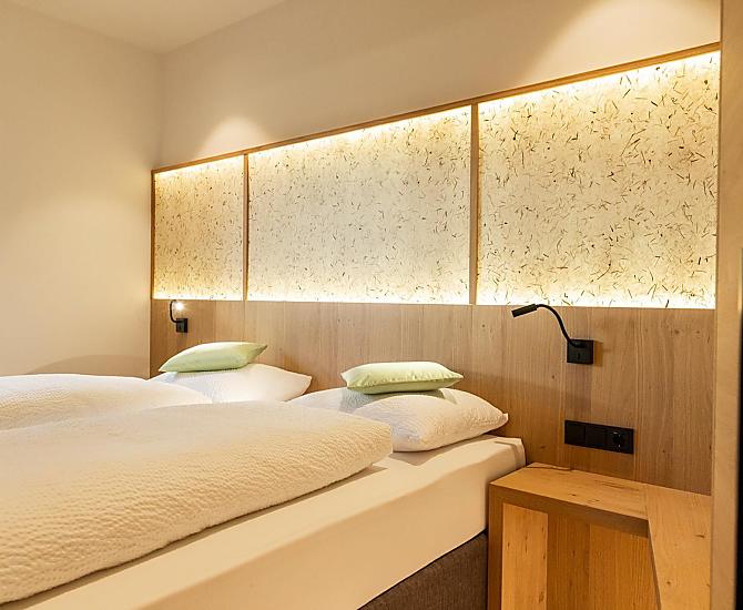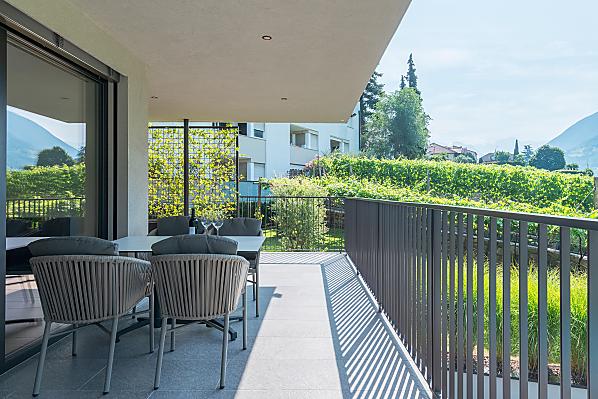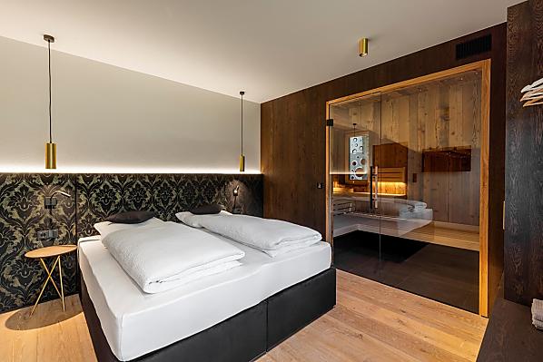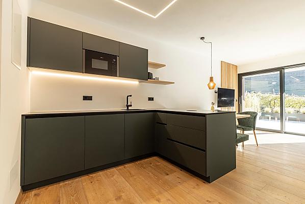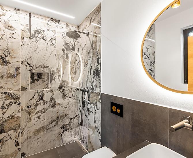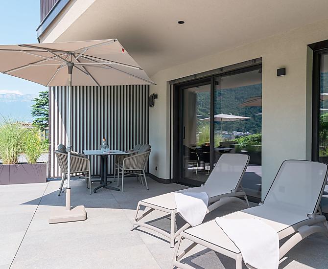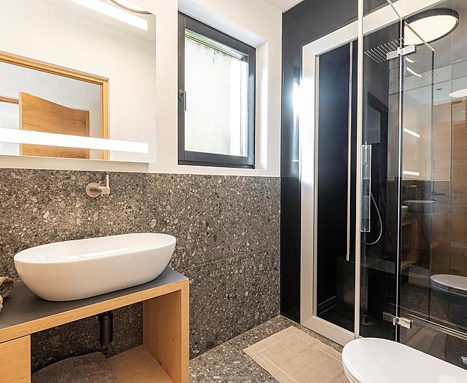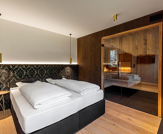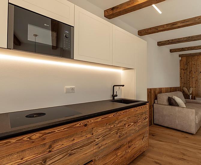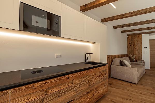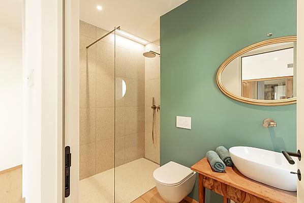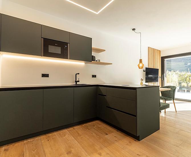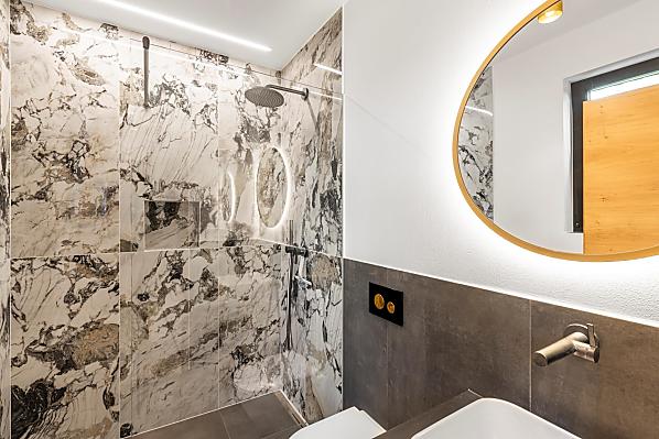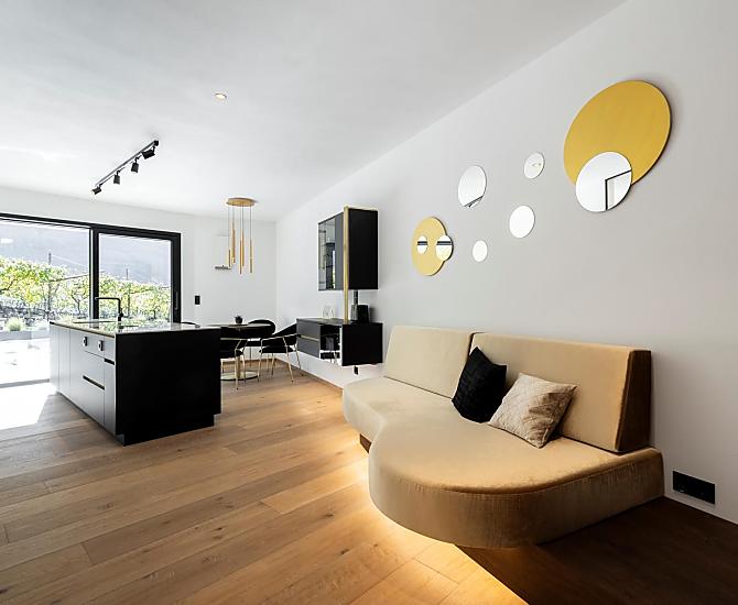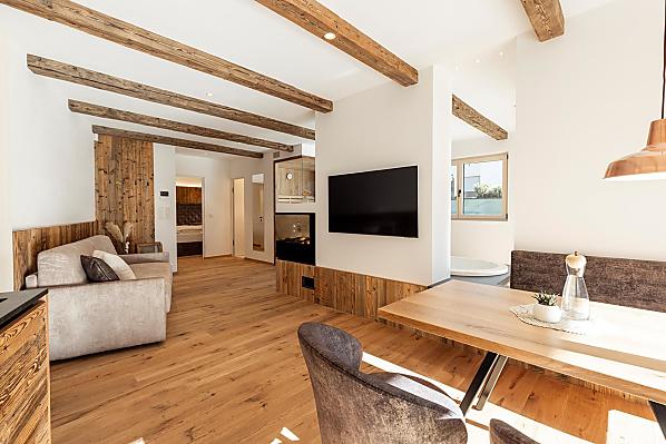 Vi aspettano appartamenti nuovi e moderni con sauna e idromassaggio privati e una splendida vista sul Catinaccio.