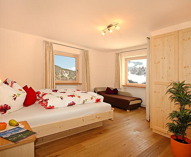 Ad un'altitudine di 1.550 metri sul livello del mare, il Felthunerhof vi dà il benvenuto in un agriturismo vario ed emozionante nella Val di Funes. Il nostro è il maso a più alta quota dell'intero comune e si trova direttamente ai margini del bosco. Prati verdi e boschi fitti circondano questo idilliaco maso altoatesino. Qui sarete accolti dalla sublime tranquillità delle montagne alpine. Nessun rumore di auto disturba il silenzio del Felthunerhof nella frazione Coll di Funes. Coll è nota per le sue numerose ore di sole in estate e soprattutto in inverno. Il villaggio più vicino dista quattro chilometri dal maso. Trascorrete la vostra vacanza in agriturismo in Val di Funes in armonia con la natura. Al mattino gli uccelli cinguettano fuori dalla finestra e da qualche anno un'aquila volteggia maestosa sopra il Felthunerhof.