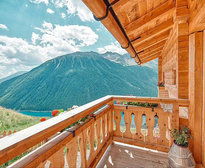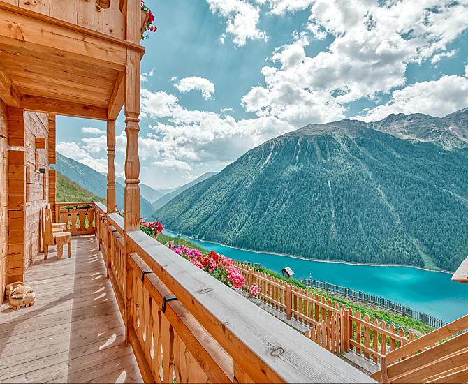 Il maso biologico di montagna si trova a 1.973 m di altitudine, sul versante soleggiato della Val Senales, sopra il lago artificiale di Vernago. Dal maso si gode una splendida vista panoramica sul lago, sulle montagne circostanti e, all’orizzonte, sul Latemar.
