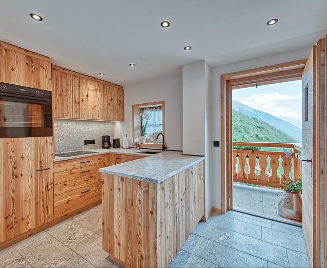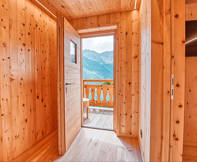 La casa che ospita gli appartamenti è costruita in legno di larice della Val Senales. Gli alloggi sono arredati con mobili pregiati in legno di cirmolo e materiali naturali. Sotto la casa si trovano un parco giochi per bambini e diverse aree relax con lettini e sedie.
