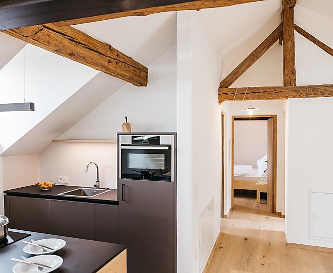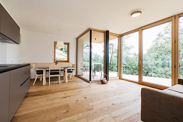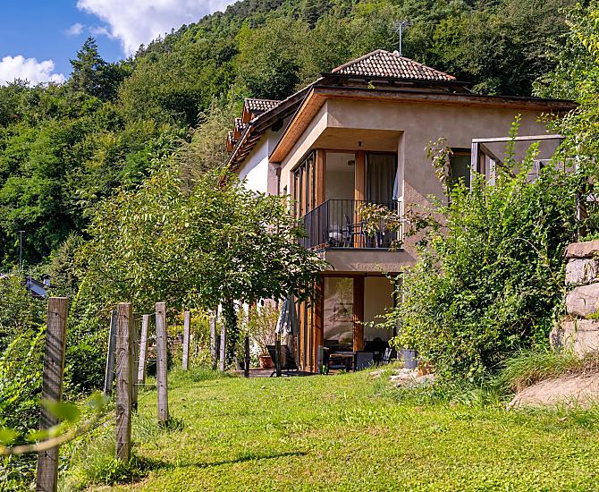 Il Firmeleinhof di Appiano sulla Strada del Vino dell'Alto Adige si erge da secoli come una fortezza. La prima menzione documentata risale al 1175, quando le fonti parlano del piccolo castello di Pedemunt. Oggi il maso Firmeleinhof è un tipico maso vinicolo di Oltradige e un'accogliente casa vacanze, circondata da tanto verde, sorvegliata da Castel Boymont e con una splendida vista in lontananza. Passeggiate nel nostro bosco e nei vigneti o semplicemente rilassatevi sul prato ascoltando il cinguettio degli uccelli. Grandi e piccini si godono la pace e il relax che offre un agriturismo. Il Firmeleinhof offre un ambiente unico: Con la natura a portata di mano, soggiornate in appartamenti che combinano tradizione e design moderno. Provate la tranquillità che le spesse pareti irradiano nella zona notte e guardate lo sfondo delle montagne altoatesine attraverso l'ampia vetrata della zona giorno.