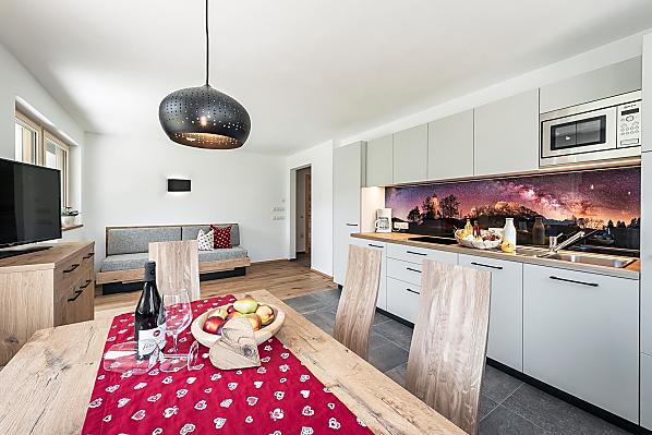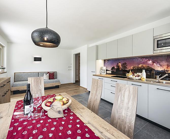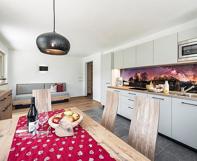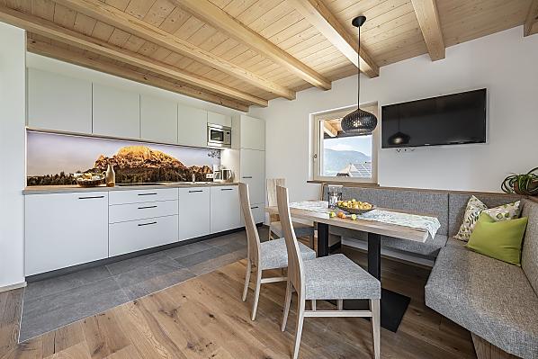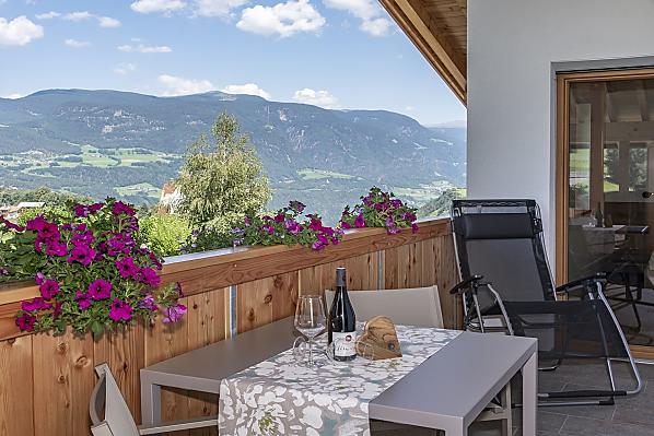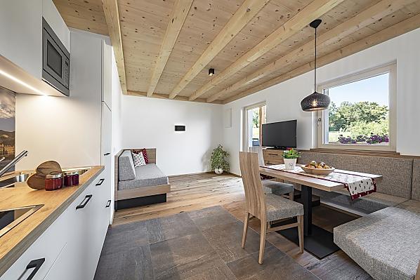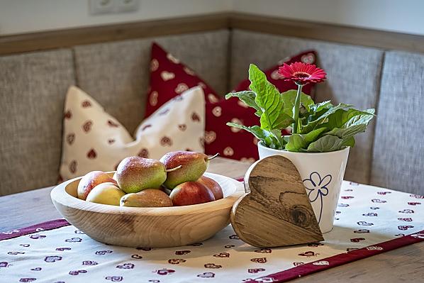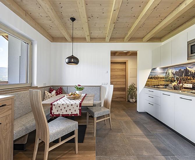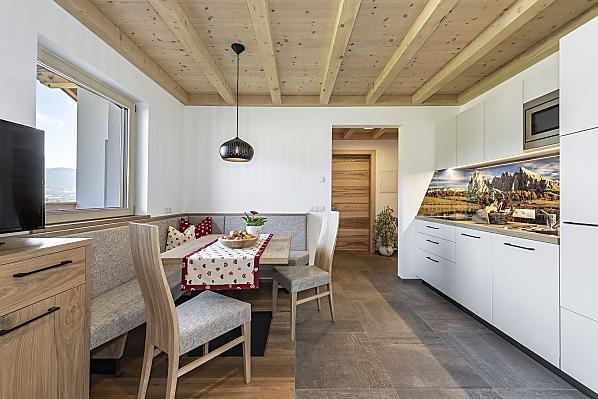 Il nostro agriturismo è una piccola realtà familiare, gestita con amore e passione dalla nostra famiglia di cinque persone, Anni e Hubert, con i loro tre figli Matthias, Simon e Fabian. Oltre al bestiame, ai nostri frutti di bosco e all'orto e alle erbe aromatiche, è la splendida natura che riempie di entusiasmo il nostro lavoro. Nel nostro maso ci sono molti animali: mucche e vitelli, galline e tacchini, gatti e api e ogni giorno c'è un qualche novità! I bambini amano in particolar modo visitare la stalla e sono felici di avvicinarsi agli animali. Le coloratissime carpe koi del nostro laghetto affascinano grandi e piccini. Costruire castelli di sabbia con papà nel parco giochi del nostro giardino, volare in cielo sull'altalena o sfrecciare sullo scivolo: che divertimento per i più piccoli! Godetevi la pace e la tranquillità e lasciate che la vista dello Sciliar vi scaldi il cuore.