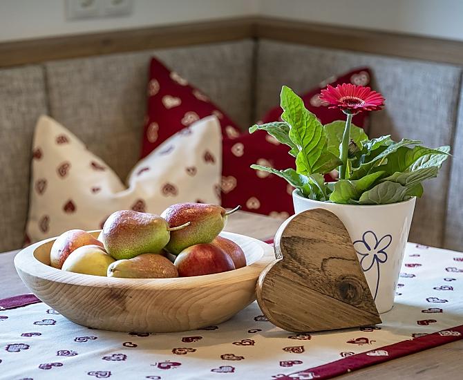 - Prodotti del maso per la colazione: latte, yogurt, uova, miele, confetture di frutta, sciroppo, spezie a base di erbe, verdure fresche di stagione, frutta fresca di stagione