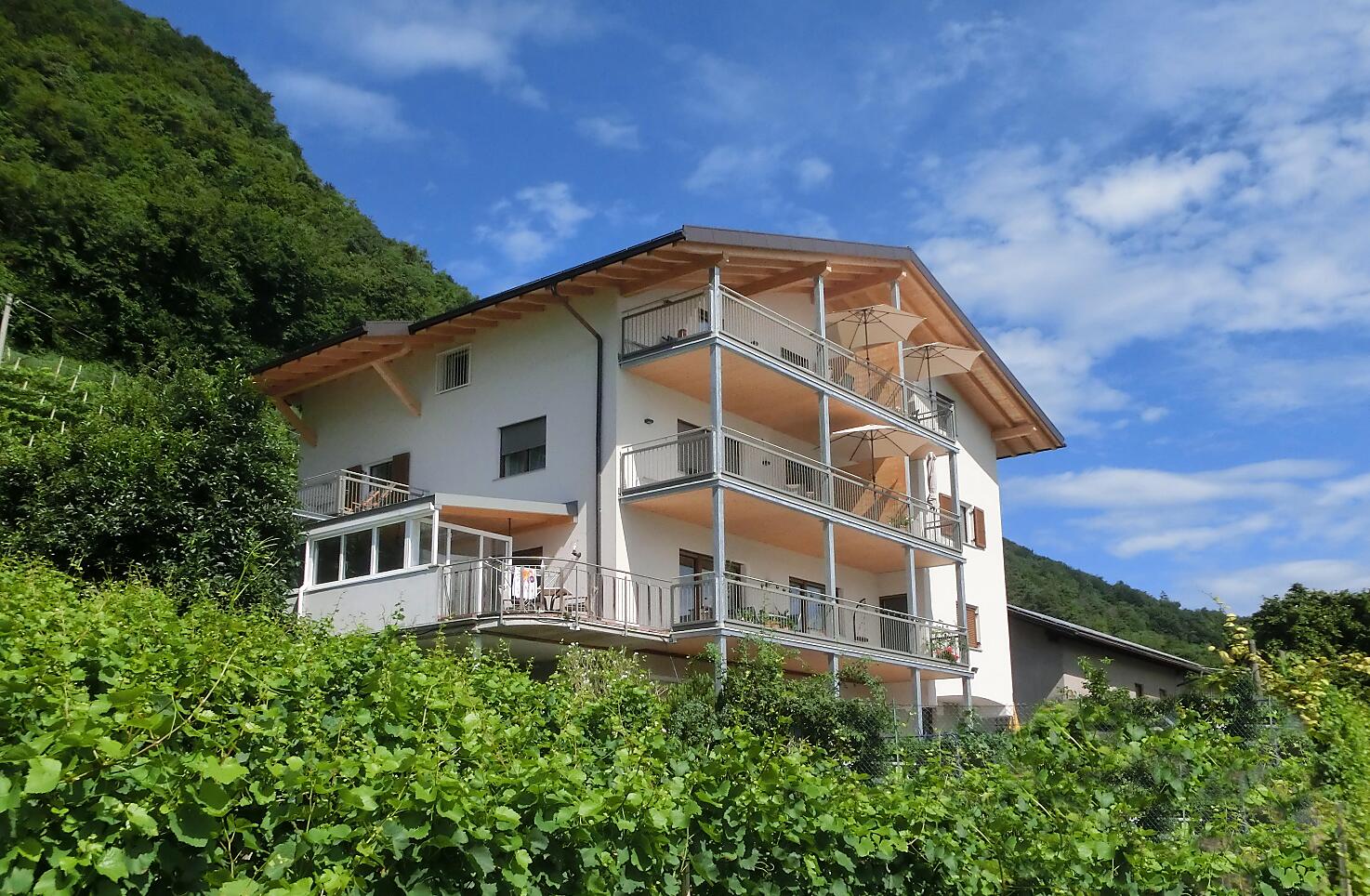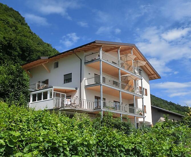 Maso frutticolo e vitivinicolo in splendida posizione panoramica. Nuovi appartamenti vacanze soleggiati, di diverse dimensioni, per due fino a sei persone. Tutti gli appartamenti dispongono di un ampio balcone panoramico.