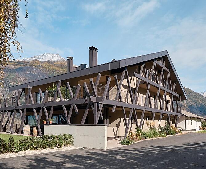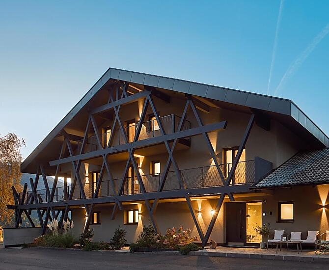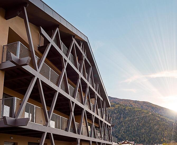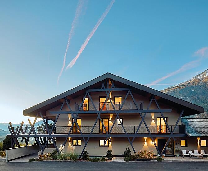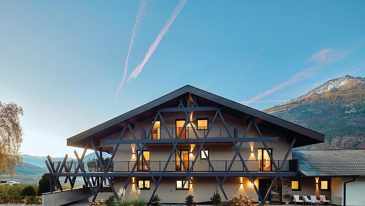 L'architettura moderna, l'arredamento elegante e una posizione mozzafiato con vista libera sulle montagne altoatesine offrono uno spazio ideale per rilassarsi e sentirsi bene.