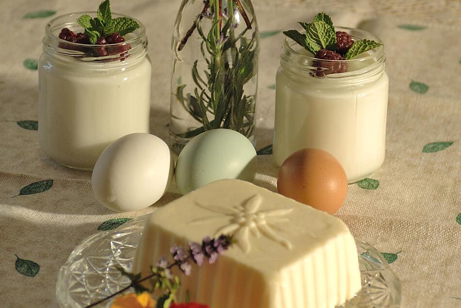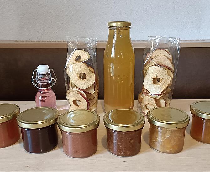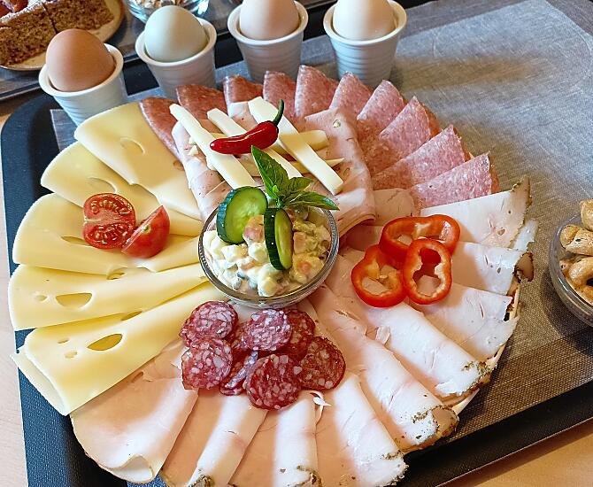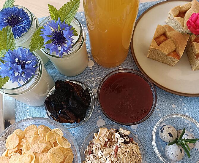 - Prodotti del maso per la colazione: uova, confetture di frutta, frutta essiccata, infuso di erbe, pasticcini, verdure fresche di stagione, frutta fresca di stagione
