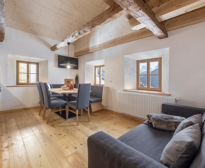 Immerso nelle Dolomiti, patrimonio naturale dell'Unesco, a 1.510 m nella soleggiata Eores vicino a Bressanone, sorge il nostro gioiello del 15° secolo. La nostra casa emana una magia tutta particolare e mostra tracce di un passato secolare. Ogni stanza è unica e ogni angolo racconta una storia. La nostra tenuta posta sotto tutela dei monumenti dispone di tre spaziosi appartamenti vacanza completamente rinnovati, che possono ospitare fino a 6 persone. Nell'arredamento delle camere, abbiamo dato particolare importanza ai materiali naturali e ai colori tenui, che non distraggono lo sguardo dalla bellezza della natura che ci circonda. L'accoglienza e il comfort abitativo sono la nostra priorità. Vi invitiamo a un viaggio alla scoperta delle nostre mura storiche e non vediamo l'ora di accogliervi presto nel nostro agriturismo.
