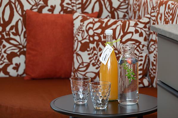 - Prodotti del maso per la colazione: miele, confetture di frutta, sciroppo, succhi di frutta, frutta essiccata, infuso di erbe, pasticcini, verdure fresche di stagione, frutta fresca di stagione