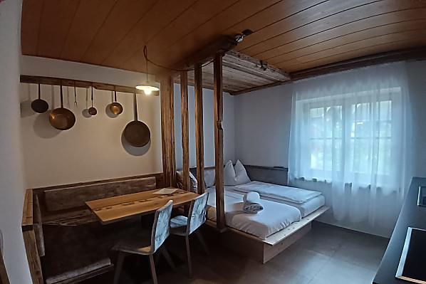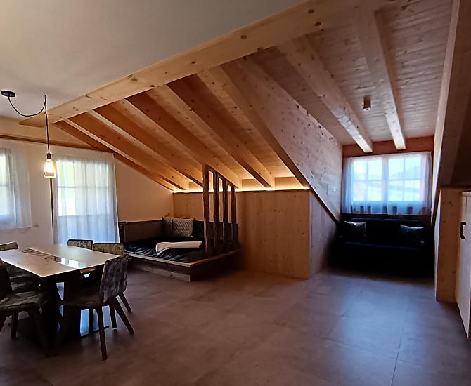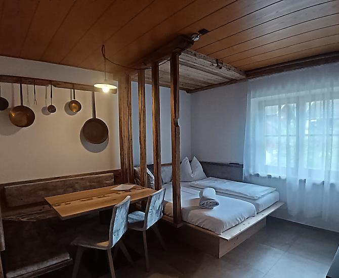 I nostri nuovi appartamenti in agriturismo sono davvero accoglienti. Non c'è da stupirsi: per la costruzione e l'arredamento abbiamo utilizzato il legno di recupero del fienile demolito.