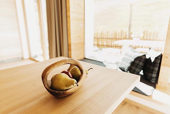 Desideri un posto dove puoi ancora percepire consapevolmente la natura? Il nostro maso biologico si trova a 930 m di altitudine, a 3 km da San Leonardo, in mezzo alla natura circondato da prati e boschi. Un rifugio perfetto se sei un amante della natura, qualcuno che cerca pace e tranquillità come noi, che cerchiamo qualcosa di speciale. La natura scorre anche nei nostri appartamenti vacanze, che garantiscono un clima interno sano con pareti in argilla e mobili in legno massiccio. Tutti gli appartamenti hanno un ingresso separato, nonché terrazze e balconi separati dove potrete rilassarvi e distendervi.