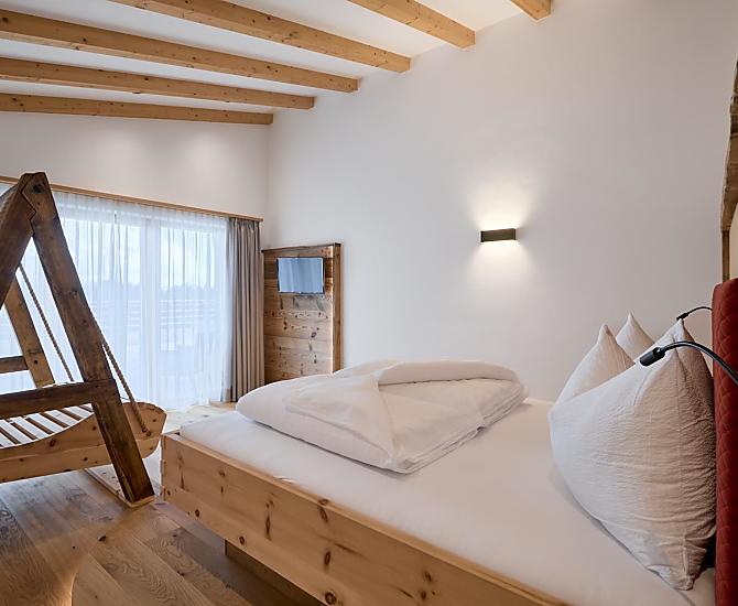 Nel borgo alto di Flaas, tra larici secolari e distese di prati, sorge il maso Lanzenschusterhof con la sua accogliente osteria contadina. Qui il tempo rallenta e il silenzio prende il posto del rumore. Grazie alla sua posizione soleggiata sul versante sud, il maso è baciato dal sole tutto l’anno.