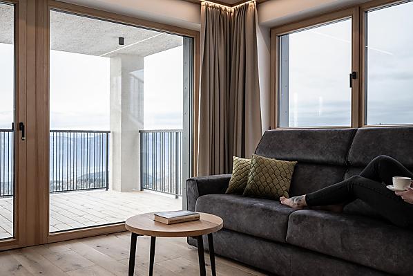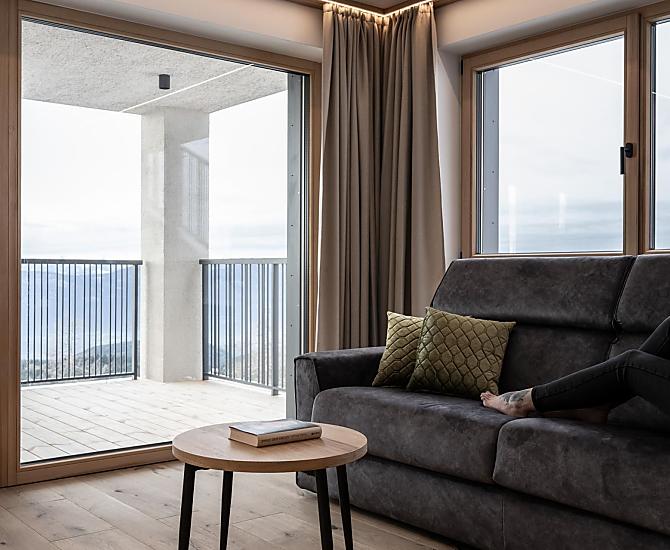 Saremo lieti di viziarvi anche con una colazione equilibrata nella nostra sala colazione panoramica o con un cestino per la colazione scelto con cura in uno dei nostri nuovi appartamenti di alta qualità.