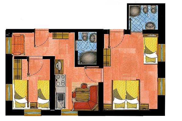 4 appartamenti: 2-4 persone, 2-5 persone, 2-6 persone