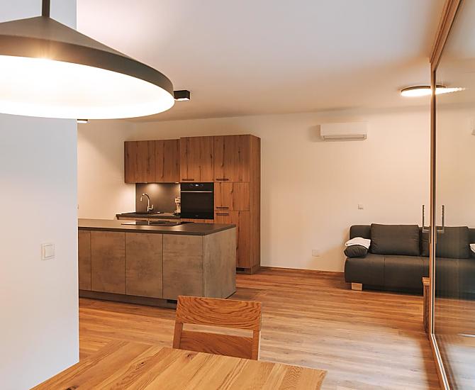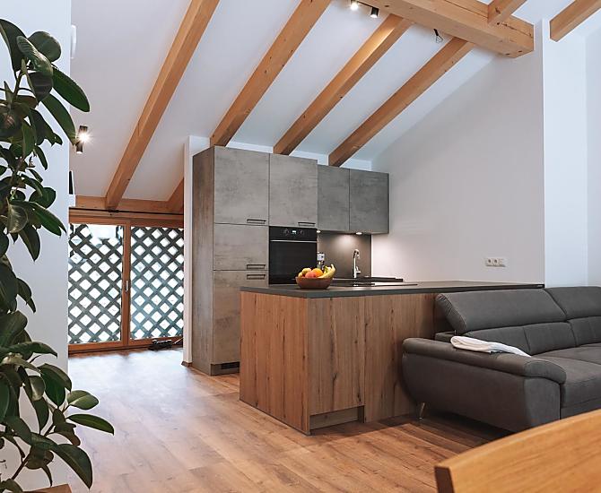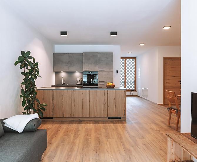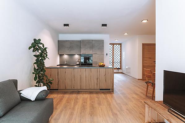 Gli appartamenti moderni sono stati costruiti come una nuova ala, sostituendo il vecchio e deteriorato edificio agricolo.