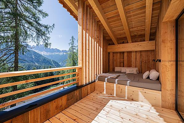 - Nella natura incontaminata. Silenzio. Un maso di nuova costruzione.