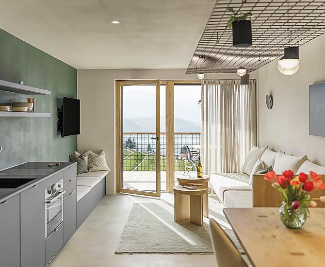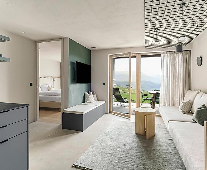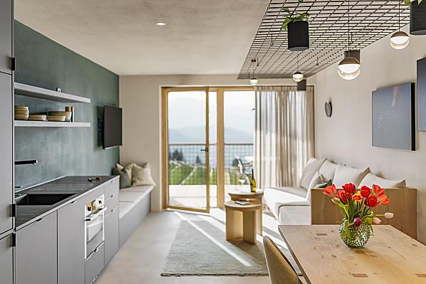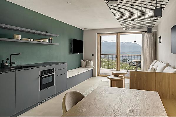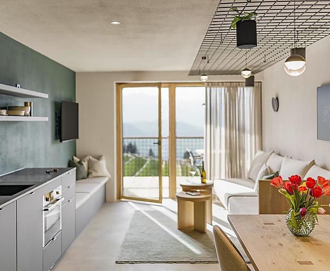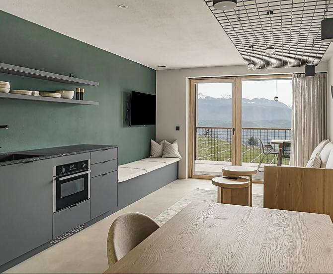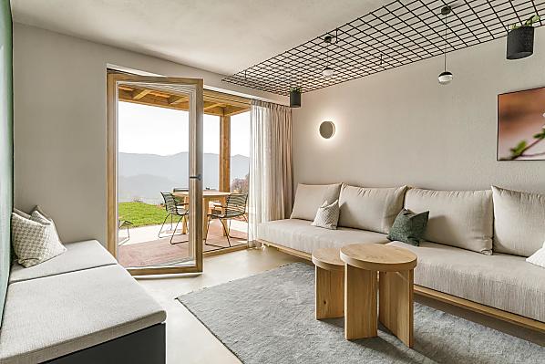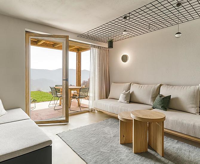 Nuova maso moderna: rifugio, vista panoramica sul lago e sulle Dolomiti, posizione esclusiva, permacultura, parco giochi avventura, percorso kneipp, piscina biologica, colazione gourmet...