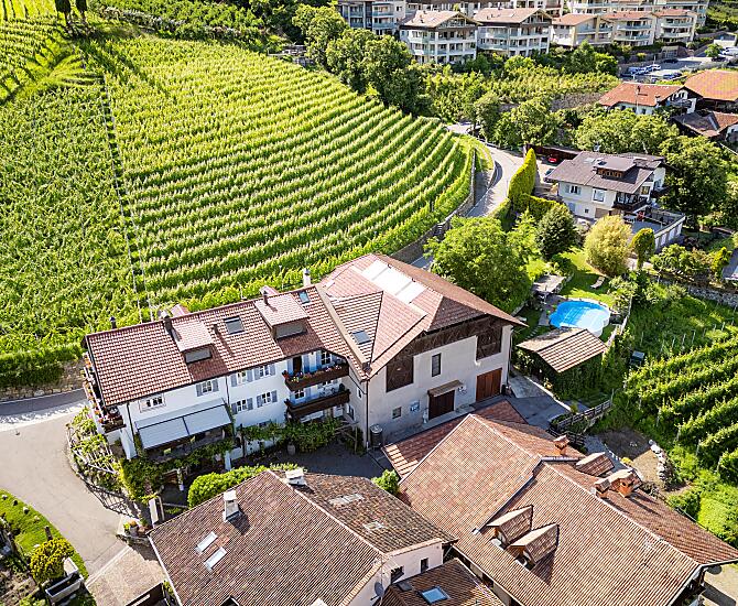 Il nostro maso si trova a Marlengo, un piccolo paese vicino alla città termale di Merano, nel cuore di Merano e dintorni. Il Pardellerhof è immerso tra le caratteristiche colline moreniche e i nostri vigneti di proprietà, in una posizione strategica ma tranquilla, proprio lungo il sentiero tenatico "ViaCulturaVini. Trascorrete le vostre vacanze al maso e godetevi una vista meravigliosa sulla Val d’Adige e sulle montagne circostanti. Qui troverete pace, relax e una calorosa ospitalità contadina.