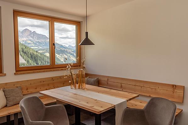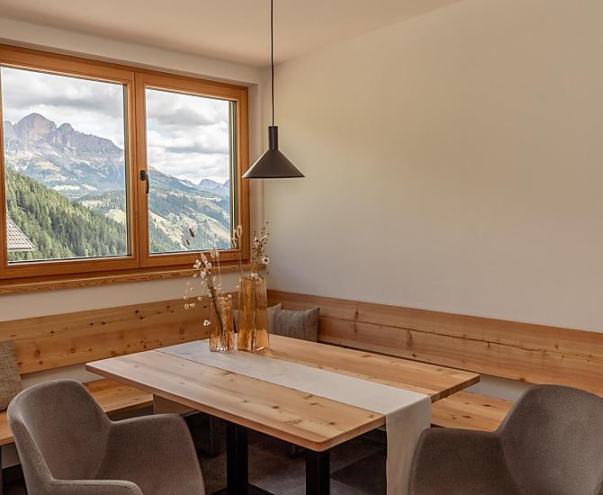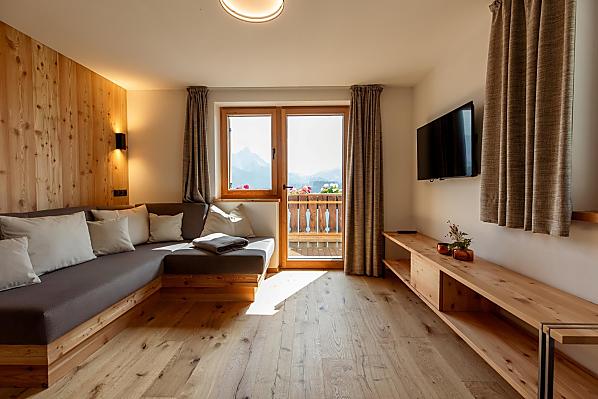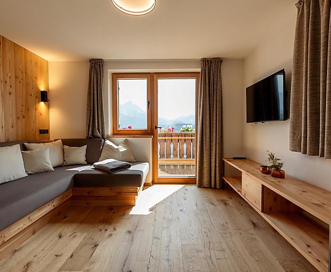 Il nostro maso si trova lontano dal caos, a una decina di minuti da Nova Levante a 1.558 m s.l.m. ed è aperto agli ospiti tutto l'anno. Nei nostri due nuovi appartamenti vacanze pace rilassante e vacanza attiva possono essere meravigliosamente combinati: potete godervi la pace e la tranquillità pura sul nostro prato con la sua vista mozzafiato sulle cime circostanti del Catinaccio e del Latemar, della Pala di Santa, del Corno Bianco e del Corno Nero. Per la parte attiva della vostra vacanza, i nostri ospiti possono approfittare delle diverse possibilità per escursioni e tour in mountain bike direttamente dal maso. E in inverno si allacciano le ciaspole proprio qui al maso per avventurarsi nel paesaggio innevato.