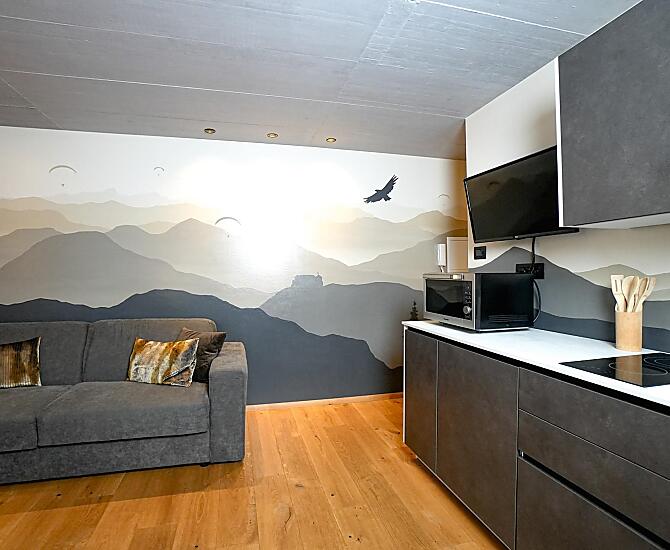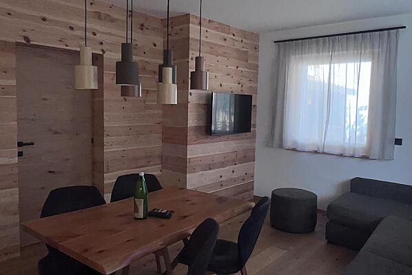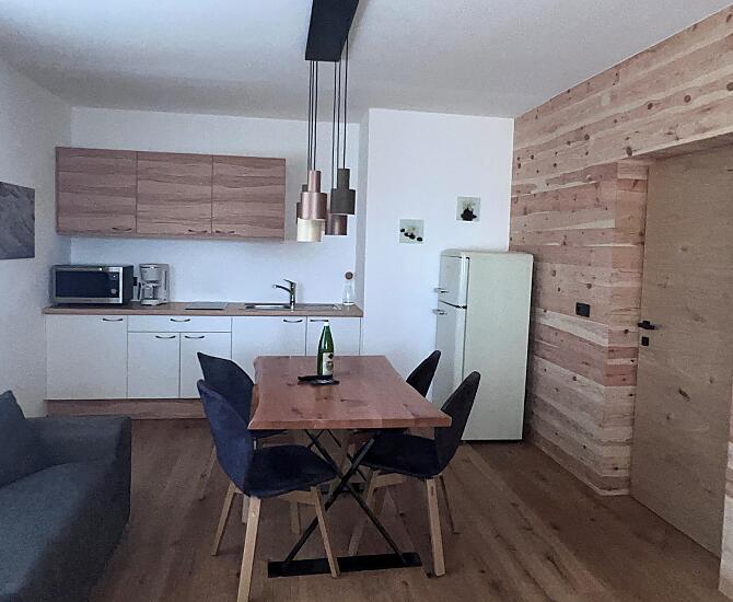 Nel 2021 il vecchio fabbricato agricolo è stato ristrutturato e trasformato in quattro moderni appartamenti vacanze e un'osteria contadina. Da giugno 2022 accogliamo i nostri ospiti con calore e gioia.