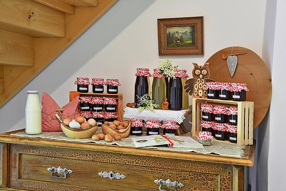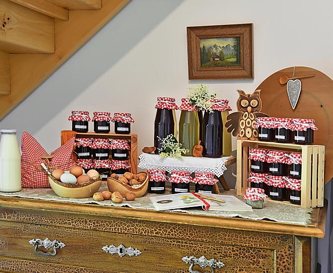 - confetture di frutta (confettura di albicocche, confettura di lamponi, confettura di more, confettura di prugne, confettura di ribes rosso)