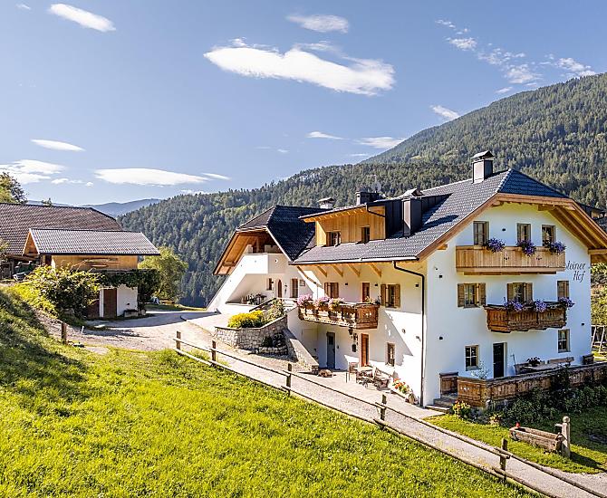 Il nostro maso a Chienes è stata custodita dalla famiglia Bürgstaller per cinque generazioni, mantenendo vivo il legame e la gestione familiare. Dal 1965, offriamo la possibilità di trascorrere vacanze indimenticabili tra i nostri campi. Ci riteniamo incredibilmente fortunati ad abitare in questo paradiso terrestre e desideriamo condividere questa nostra gioia con voi. Venite a vivere un'esperienza vacanziera unica in famiglia al Rasteinerhof, dove natura, allegria e energia sono sempre al centro di tutto. Dal nostro maso, ogni giorno si apriranno le porte a straordinarie avventure che resteranno impresse nei vostri ricordi.
