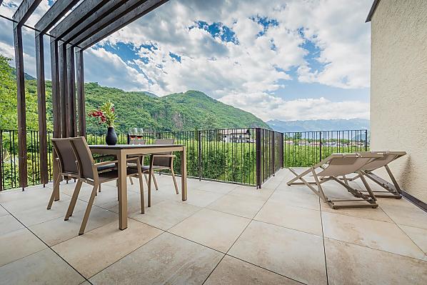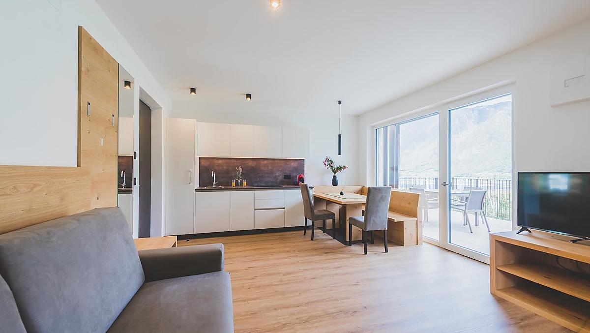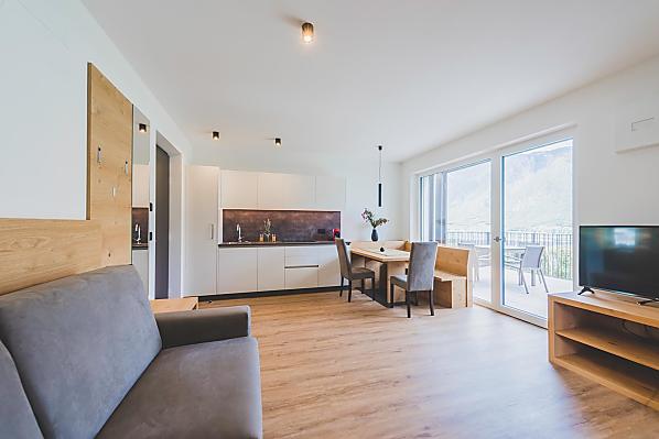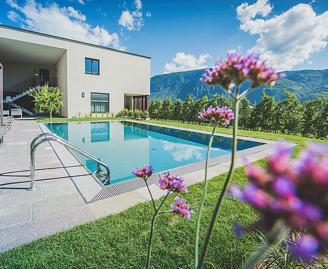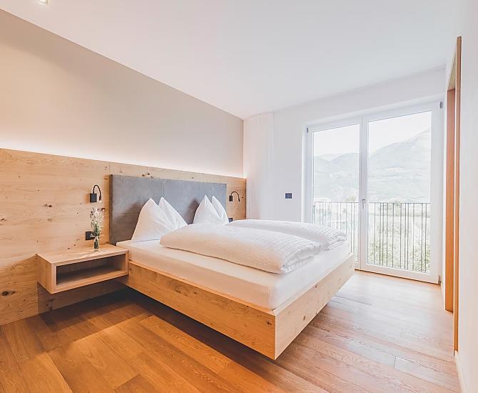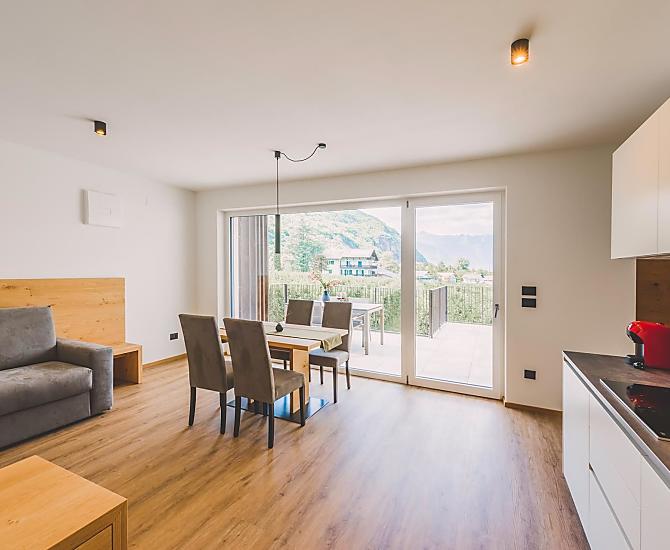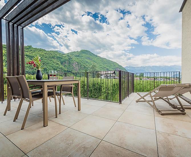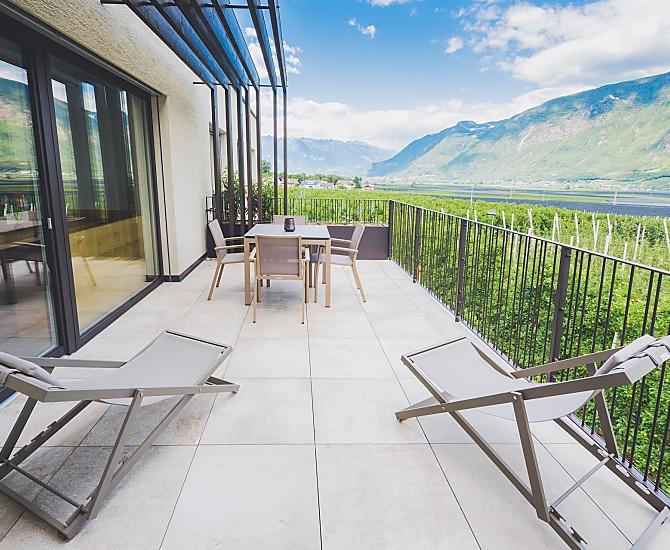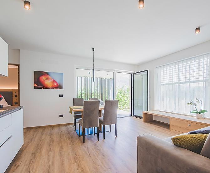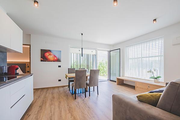 Non vediamo l'ora di farvi trascorrere una vacanza in mezzo ai nostri frutteti, in una posizione molto tranquilla ma centrale. I nostri appartamenti vacanze sono moderni e arredati con stile, con l’utilizzo di molti materiali naturali dai colori armoniosi. Le generose vetrate fanno entrare la natura nella stanza donando una speciale sensazione di libertà. Ogni appartamento ha una spaziosa terrazza con posti a sedere e sedie a sdraio, dove potrete concludere la vostra giornata nelle miti serate estive.
