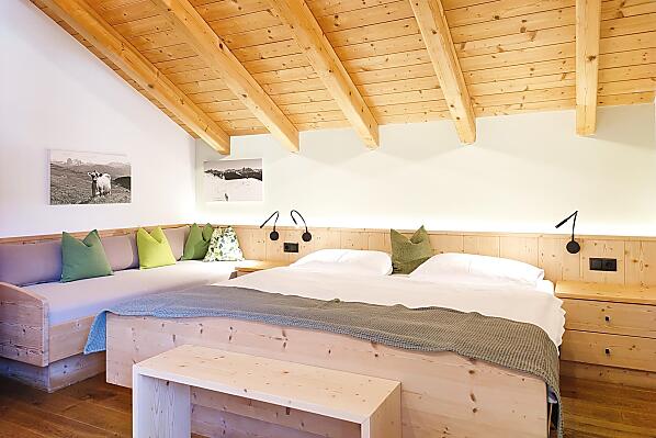 La contadina Erika ti coccola ogni mattina con una colazione ricca e genuina, fatta di bontà casalinghe. Il contadino Florian, invece, ti farà conoscere da vicino la vita al maso – e nella stagione invernale ti accompagna con le ciaspole fino alla sua malga privata.