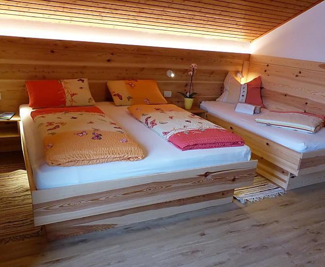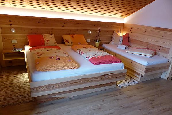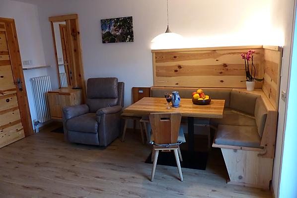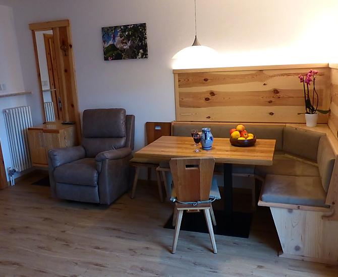 Il nostro maso frutticolo si trova in una posizione tranquilla e soleggiata sotto Castelrotto, circondato da ciliegi, viti e meli. Abbiamo un accogliente salotto, una terrazza soleggiata, un'area barbecue e un grande parco giochi con trampolino e tanti giochi come ping pong e calcio balilla. Il nostro prato per prendere il sole, proprio accanto alle vigne, offre pace e relax.