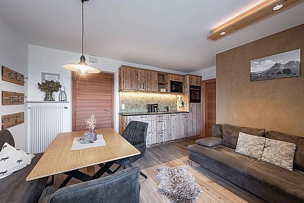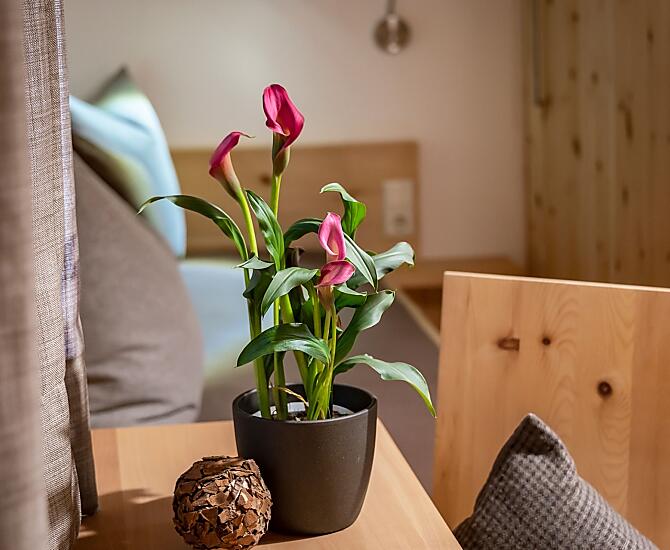 Arrivare, respirare profondamente, sentirsi a casa... Lasciarsi affascinare dalla posizione collinare aperta e dalla vista panoramica del nostro imponente maso. Godetevi la divina tranquillità negli accoglienti e confortevoli appartamenti vacanze, alcuni dei quali con intonaco naturale di argilla marrone per una sana sensazione di familiarità. L'ampia area esterna, lo spazio aperto nella natura della fattoria, il canto degli uccelli al mattino, i suoni familiari del lavoro quotidiano, l'odore dell'erba appena tagliata, l'atmosfera serale sul balcone con un bicchiere di vino, il tramonto, i ritiri per gli adulti per rilassarsi, la vista sulle montagne - potete godervi tutto questo con noi. Il lettino sospeso nel prato offre un grande cinema di montagna: lo Sciliar è davvero bello. L’Alpe di Siusi e i villaggi di Castelrotto e Siusi sono raggiungibili in pochi minuti in auto o lungo la passeggiata di Castelrotto.