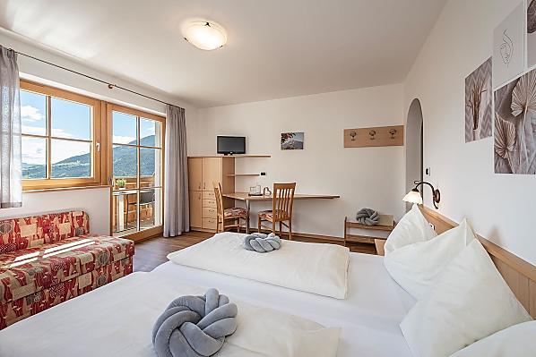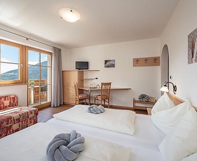 Il nostro maso vinicolo e frutticolo a conduzione familiare si trova in una splendida posizione alla fine del villaggio di Pasa. In mezzo a vigneti e meleti troverete relax e tranquillità, con una magnifica vista sulla conca di Bressanone. Sulla nostra grande terrazza solarium potrete rilassarvi e godervi la vista e la tranquillità, mentre i bambini si divertono nel bellissimo parco giochi. Il nostro agriturismo dispone di ampie camere recentemente ristrutturate e di un appartamento per le vacanze. La nostra ricca colazione a buffet con tante prelibatezze fatte in casa offre l'inizio ideale della giornata. Nella nostra locanda contadina è possibile gustare deliziose specialità altoatesine fatte in casa e piatti di stagione. In autunno offriamo il tradizionale Törggelen con il nostro vino appena spillato e piatti tipici. Il nostro maso è un punto di partenza ideale per escursioni e gite giornaliere, con una fermata dell'autobus diretta davanti alla casa.