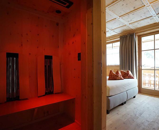- In ogni appartamento c'è una sauna a infrarossi in legno di cirmolo.