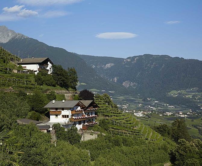 Il nostro maso si trova sopra la città termale di Merano, in mezzo al verde, circondato da frutteti e vigneti. Con una splendida vista sulla Valle dell'Adige e sulla Val Venosta. Il nostro maso è circondato da numerose attrazioni ed è una meta di vacanza ideale per chi cerca pace e tranquillità ed escursionisti.