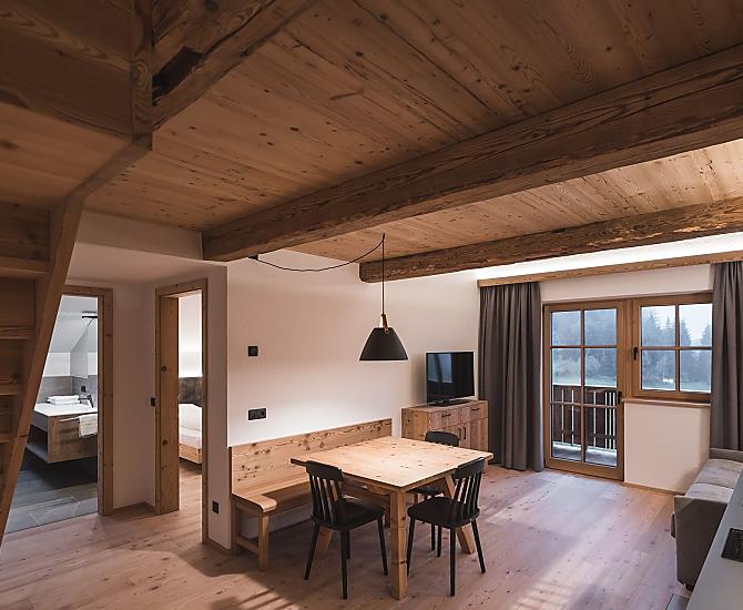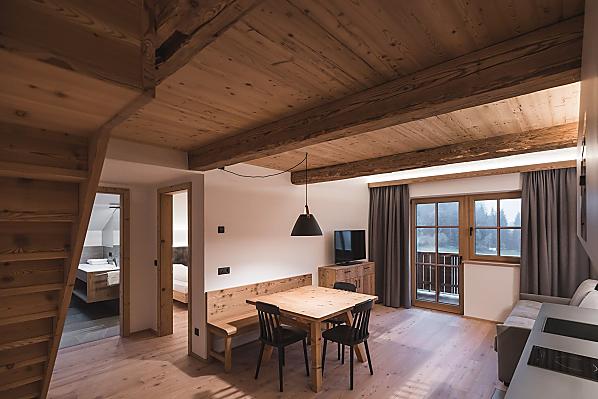 Il nostro maso si trova all'entrata del paese di Santa Maddalena in Val Casies, vicino al nostro bosco misto "Weider-Bach". Già dal balcone dell'appartamento si possono spesso vedere diversi animali selvatici come caprioli, cervi o lepri, che escono dalla foresta per pascolare. Godetevi lo spettaacolare cinguettio degli uccelli mentre vi rilassate sul prato del maso, lasciatevi consigliare dai contadini sulle possibilità di escursioni o di ristoro e informatevi sulle numerose possibilità di tour sugli sci nella zona. I nostri ospiti hanno un accesso separato agli appartamenti, grazie ad una scala dedicata. La casa è completamente isolata termicamente e viene riscaldata in modo sostenibile con pellet di legno. Siamo anche orgogliosi delle buone proprietà di isolamento acustico delle pareti divisorie, che assicurano silenzio e privacy.