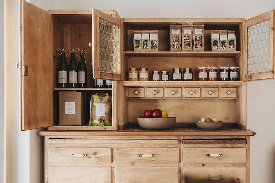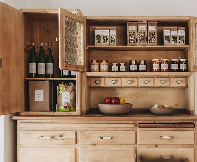 - Prodotti del maso per la colazione: uova, miele, confetture di frutta, sciroppo, succhi di frutta, frutta essiccata, infuso di erbe, pasticcini, verdure fresche di stagione, frutta fresca di stagione