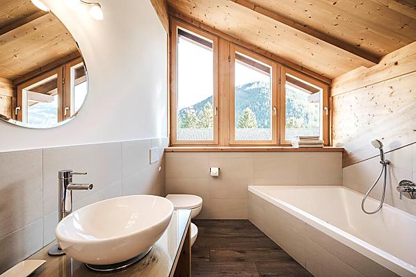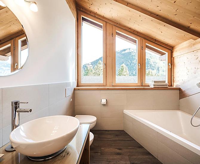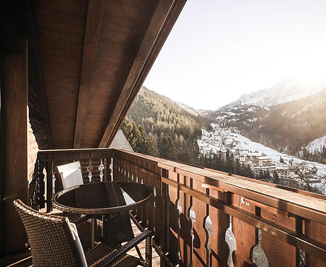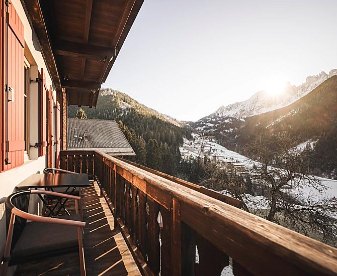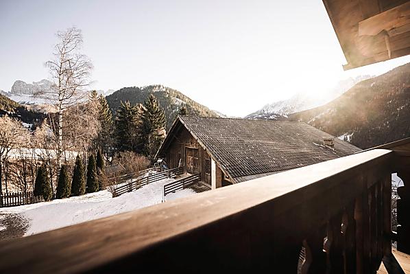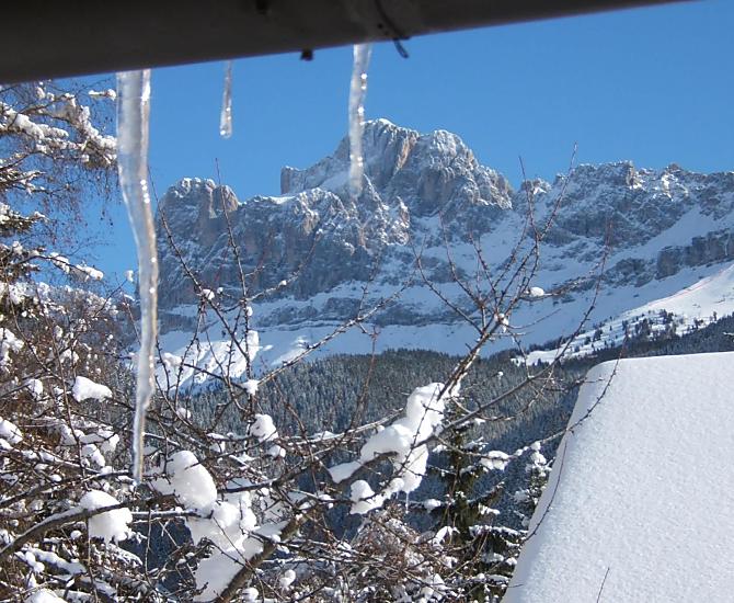 Ampi balconi soleggiati lusingano il cuore: la favolosa vista sul Catinaccio e sul Latemar, le anatre che sguazzano nell'acqua limpida della fontana, i due pony al pascolo e il gatto che fa le fusa sulla panchina sotto l'antico pero.