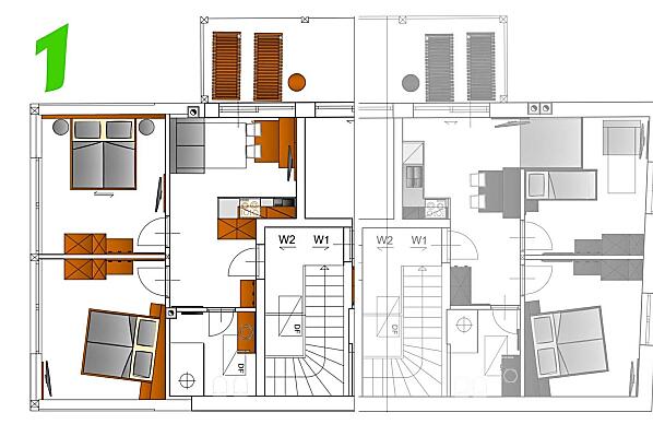 2 appartamenti: 2-5 persone