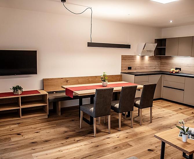 Allontanarsi da tutto, dimenticare per un breve periodo lo stress della vita quotidiana, fare il pieno di energia e vivere la natura: questo è ciò che desideriamo per voi nel nostro maso di nuova costruzione. Il nostro maso è situato in una posizione soleggiata e dista solo 1 km dal centro di Perca. Un ampio giardino con parco giochi per bambini, altalena, sabbiera e ping pong offre molto spazio per riunirsi e sfogarsi.