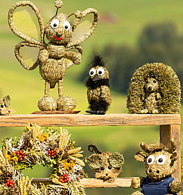 cartone rigido, paglia, fieno, mais, sorbole, colla, forbice, matita