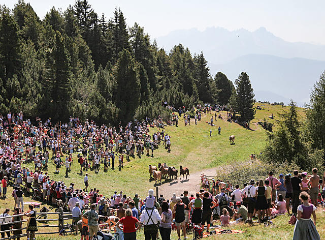 In estate c'è molto da fare nei masi dell'Alto Adige. Gli allevatori di montagna portano il bestiame giovane nei pascoli alpini più alti. Lì gli animali trascorreranno i mesi estivi tra le erbe alpine all'aria aperta. Per immagazzinare una scorta di foraggio per l'inverno, i prati intorno alla fattoria vengono falciati e il fieno secco viene portato qui. Nei masi frutticoli si diradano le mele affinché le rimanenti abbiano spazio sufficiente per crescere e prosperare. Ad agosto è finalmente arrivato il momento di raccogliere a mano le prime varietà di mele. I viticoltori devono essere un po' più pazienti per la raccolta. In estate, i tralci delle viti vengono potati e le foglie in eccesso vengono rimosse, in modo che l'uva abbia spazio e sole a sufficienza per maturare.