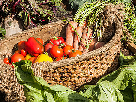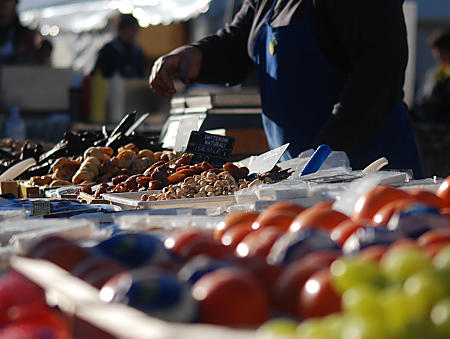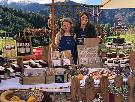 Angolo dei prodotti: confetture di frutta, spezie a base di erbe, frutta fresca di stagione ...